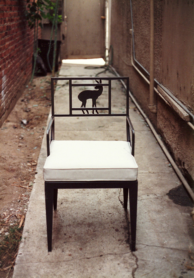 rabbit, squirrel, crow, raccoon, deer, and wolf. Powder-coated aluminum, cushion.