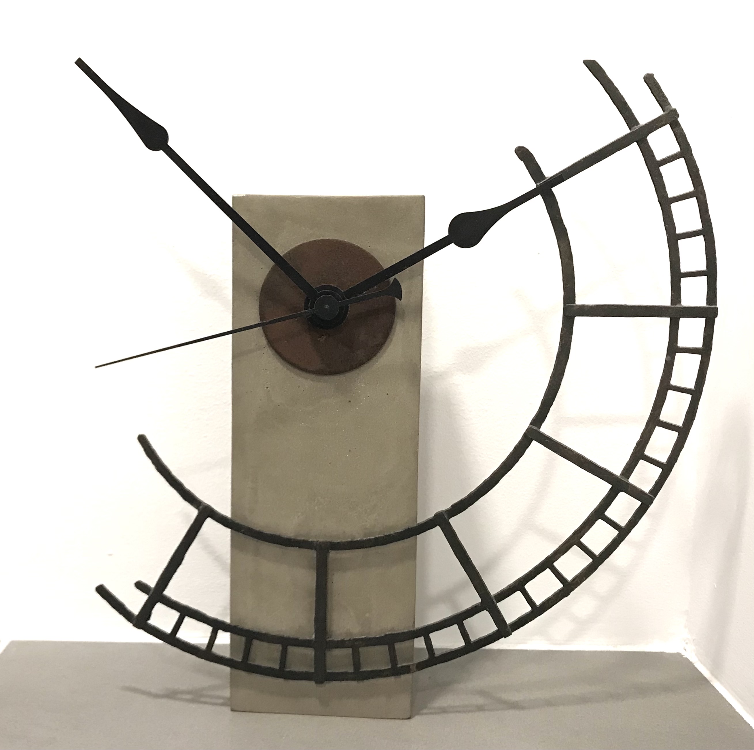 Rusted steel and cast cement. Smaller version, rusted steel and wood.